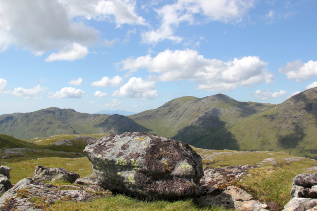 “Set off late after packing bike stuff and rucksack. Arrived at the base of Beinn Sgulaird on a glorious sunny afternoon at 14:30. Opened the boot and – Disaster! I had left the rucksack complete with compass, maps, food etc in the garage! Decided to climb like a tourist with just a bike water bottle and a mac. Steep slopes up and down but survived. A lesson learned however.”