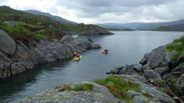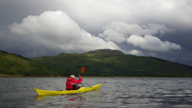 “A late start via Jake’s van for bacon and egg sandwiches, drove to Glenborrodale where we eventually found a launching area for the kayaks. Paddled against the wind to Oronsay and into the bay to the south. Due to our late start we missed the tide and were faced with a 200m portage. This proved interesting as the beach was knee deep, soft, smelly, glutinous and generally revolting mud which sucked off shoes, we resembled primeval bog monsters. Lunch on the rocks, washed gear and boats and we headed off on the tidal race into Loch Teacuis. We passed an islet with a large colony of Arctic Terns and Common Gulls en route to the head of the loch. Against the tide and through the east channel past Carna and back along the north shore of Loch Sunart in flat calm. A wonderful day and a fitting and memorable 60th birthday for your humble scribe.”