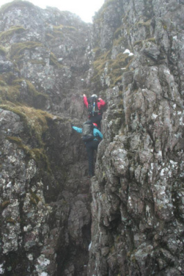 Undaunted by the weather, and with typical cunning, Dave, Bob and Fiona tackled Nevisport direct. A fine route.