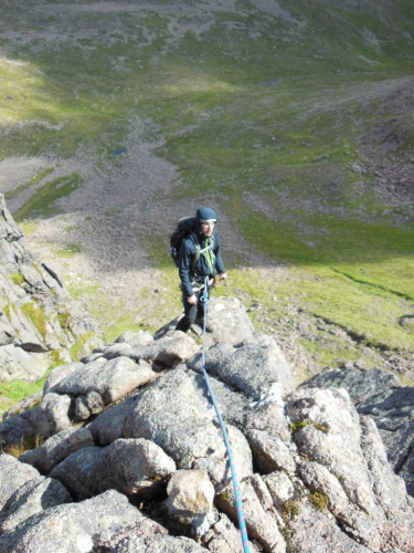 Shane and Graeme – rock climb Crystal Ridge in Corrie Sputan Dearg and over Ben Macdui. Windy! First mountain route for Shane who also led the 2nd pitch.