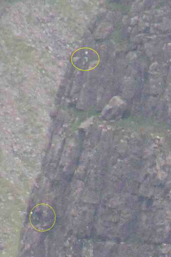 Simon and Jane on Cioch Nose (taken from 2km away on Beinn Bhan)