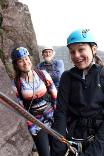There is surely something amiss if a Mountaineering Club travels to Applecross, and the weather is good, and nobody attempts the Cioch Nose. And so it was that four hardy mountaineers set off for the classic climb. The formidable foursome who had tackled steep rock on the wild and remote crags of Rum once again donned their harnesses for some steep mountain fun. Kat and Simon, who had climbed on Hallival on the club May weekend, and Dan and Jane, who had teamed up with Martin on the same weekend to “spread the wings of faith” and levitate up Archangel Route on Trollaval, made their way to the epitome of classic Scottish mountain sandstone climbing. Swapping partners at the bottom of the route (is this starting to sound a little seedy or does the author of this report have a dirty mind?) they climbed the awesome route, passing most of the difficulties before the rain started. But when the rain started it did not fizzle out, it did not take a breath, it just kept raining all afternoon and night.