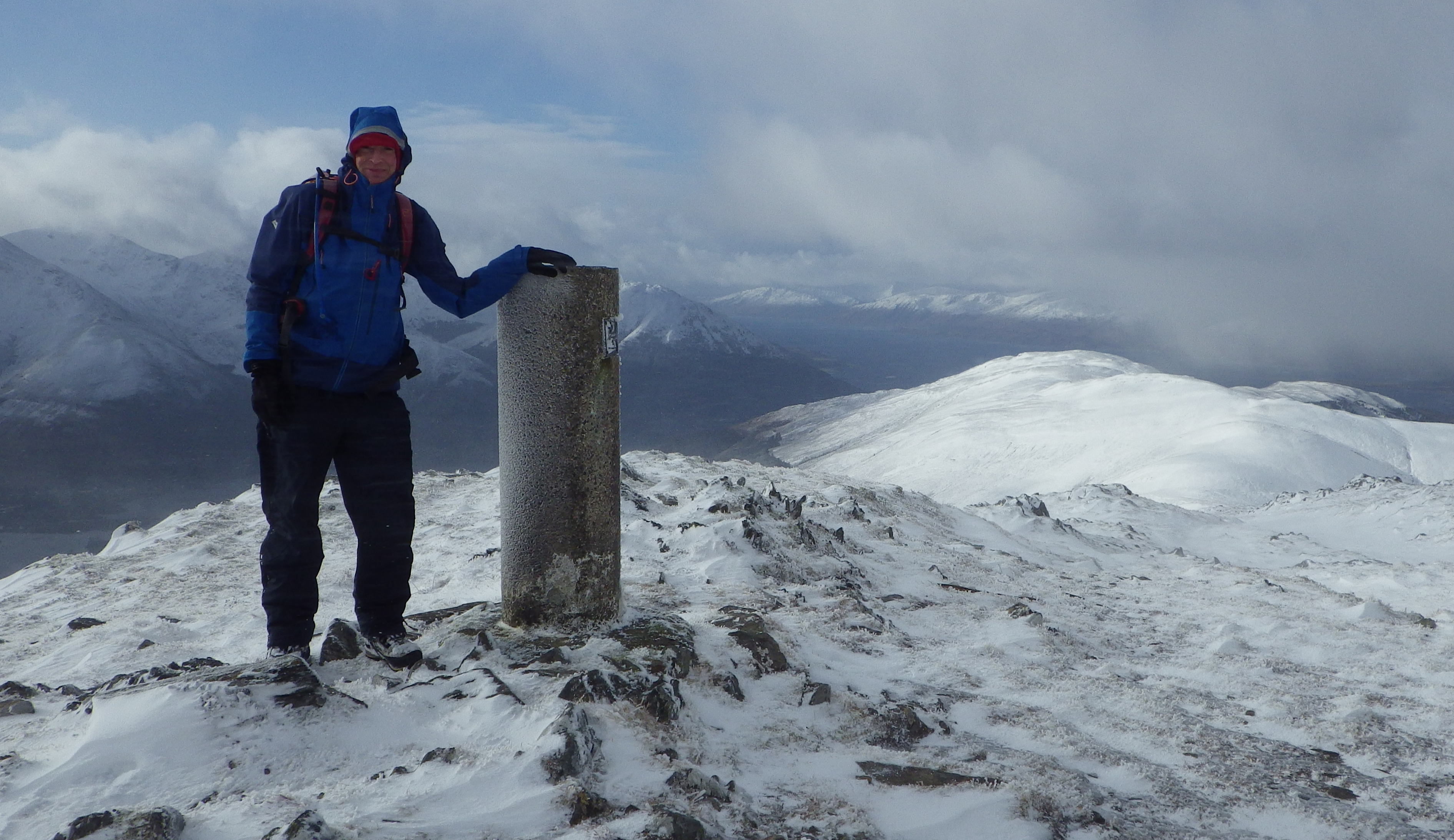 Saturday night’s enthusiasm for going up a hill on Sunday seemed somewhat diminished once breakfast was over. Whilst most headed home, Sheena and Dan headed off to Mam na Gualainn on the north shore of Loch Leven. Amazingly they were treated to a clag-free ascent with magnificent views towards the Ballachulish Horseshoe and Glen Coe. Even Sgurr na h-Ulaidh (aka Hidden Munro) could be seen peaking out. Just as we left the summit we were enveloped by the next shower cloud. This brought ferocious winds, poor visibility and snow/hail. A good day nonetheless.