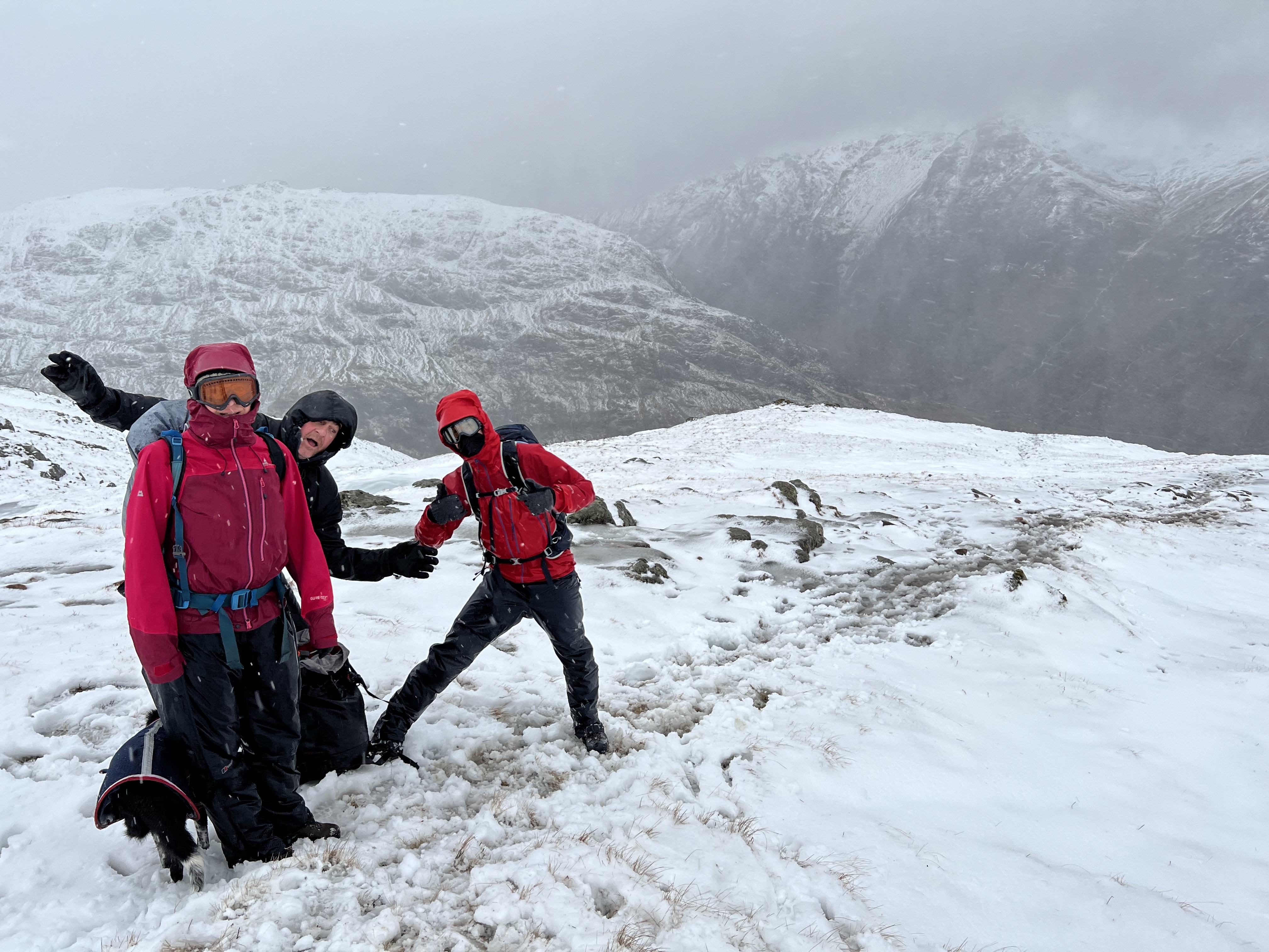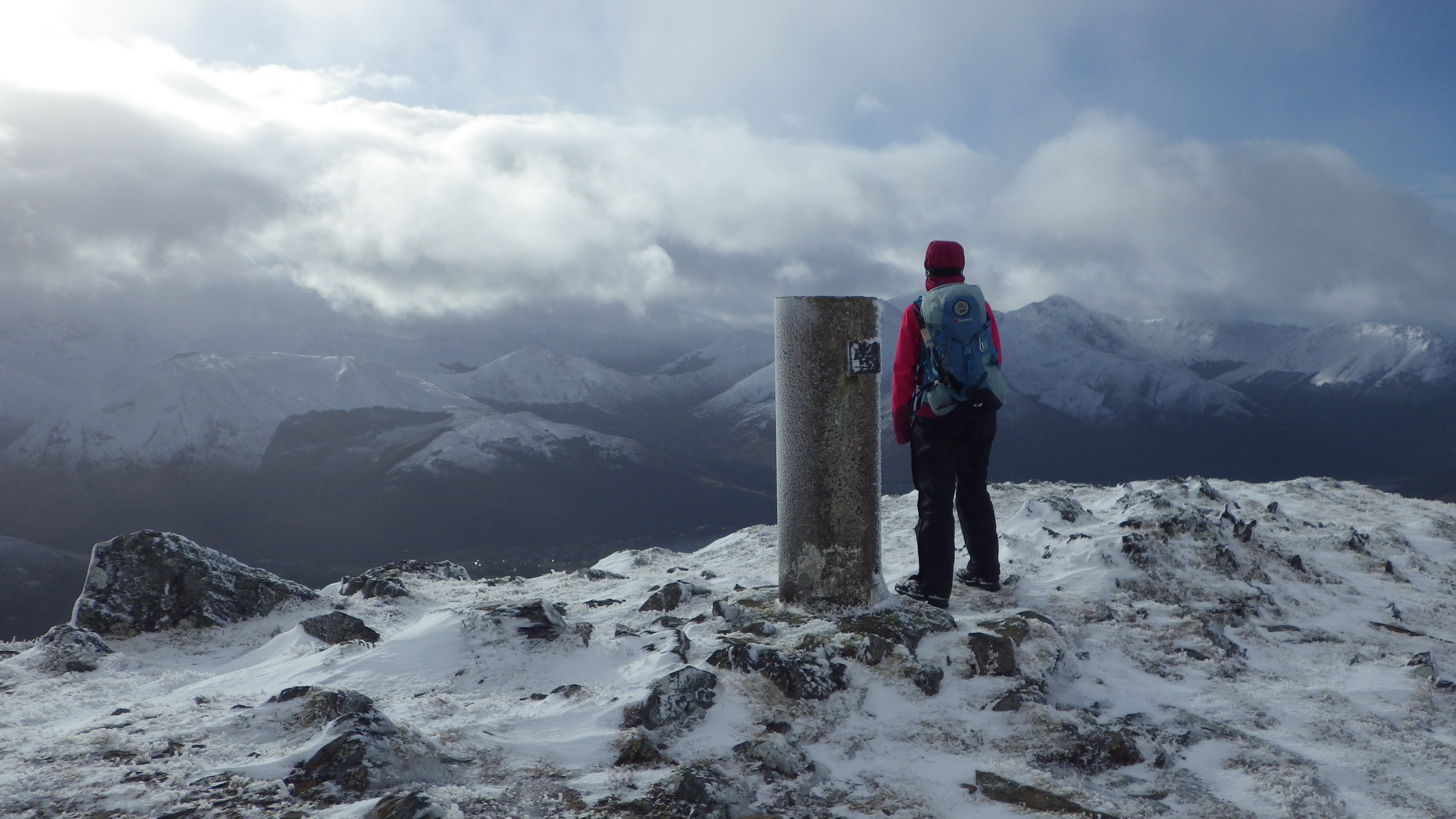 Saturday night’s enthusiasm for going up a hill on Sunday seemed somewhat diminished once breakfast was over. Whilst most headed home, Sheena and Dan headed off to Mam na Gualainn on the north shore of Loch Leven. Amazingly they were treated to a clag-free ascent with magnificent views towards the Ballachulish Horseshoe and Glen Coe. Even Sgurr na h-Ulaidh (aka Hidden Munro) could be seen peaking out. Just as we left the summit we were enveloped by the next shower cloud. This brought ferocious winds, poor visibility and snow/hail. A good day nonetheless.