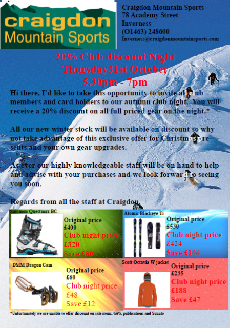 Craigdon Discount Night: Thursday 31 October 2013