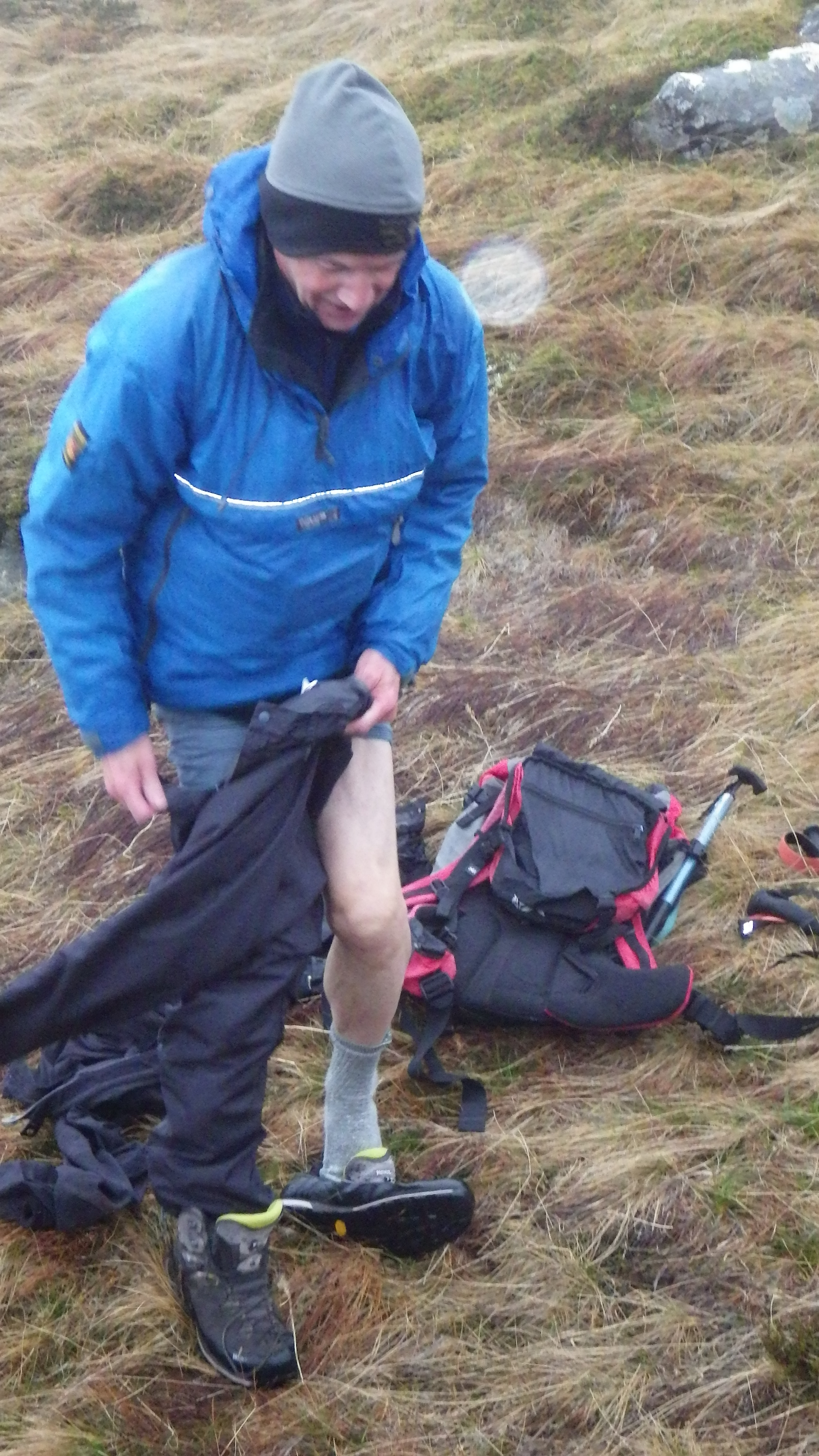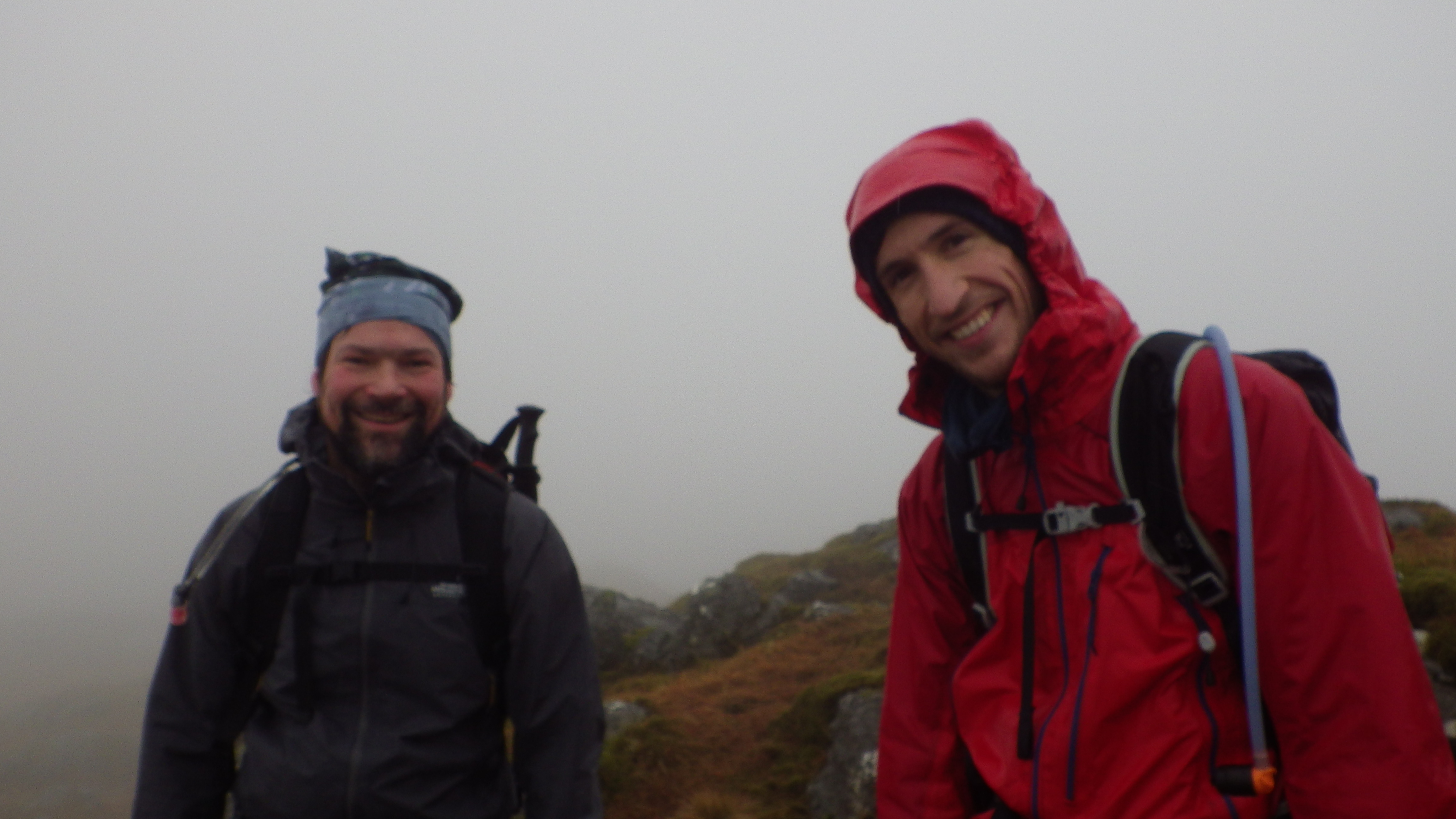 Babs was certain she would have no companions for her intended Corbett, Meall an Fhudair. Instead a group of six keen beans (Justin, Grace, Alan, Dan, David and Joe) joined her on Saturday. A fine start, swiftly followed by heavy rain which lasted all day. They footered about a while, then headed down. David, Dan and Joe decided to footer about a bit longer, and so speed on to the Graham, Ben Damhain. Everyone got a good soaking! However, they certainly had a more comfortable day than the munro baggers out there.
