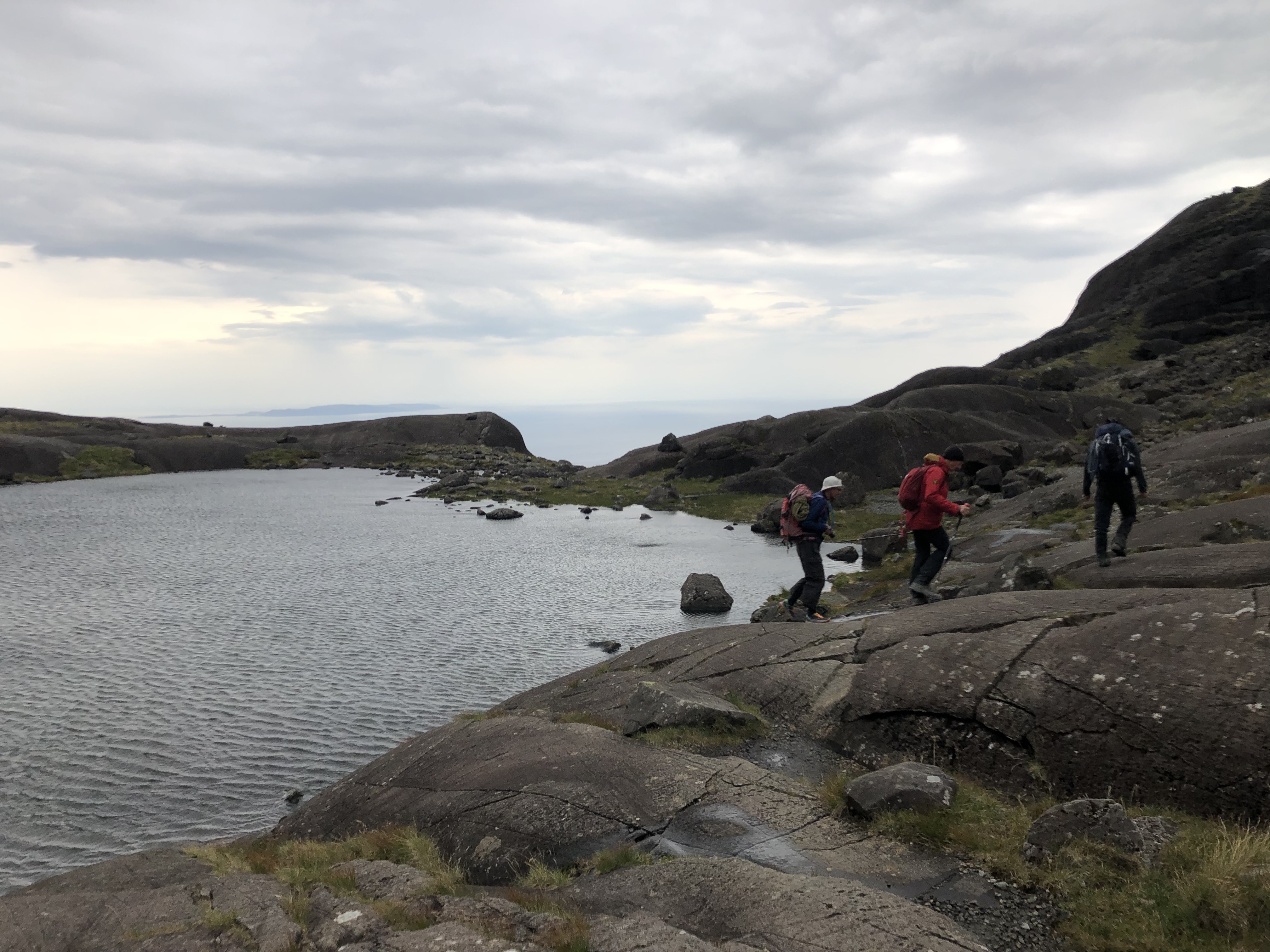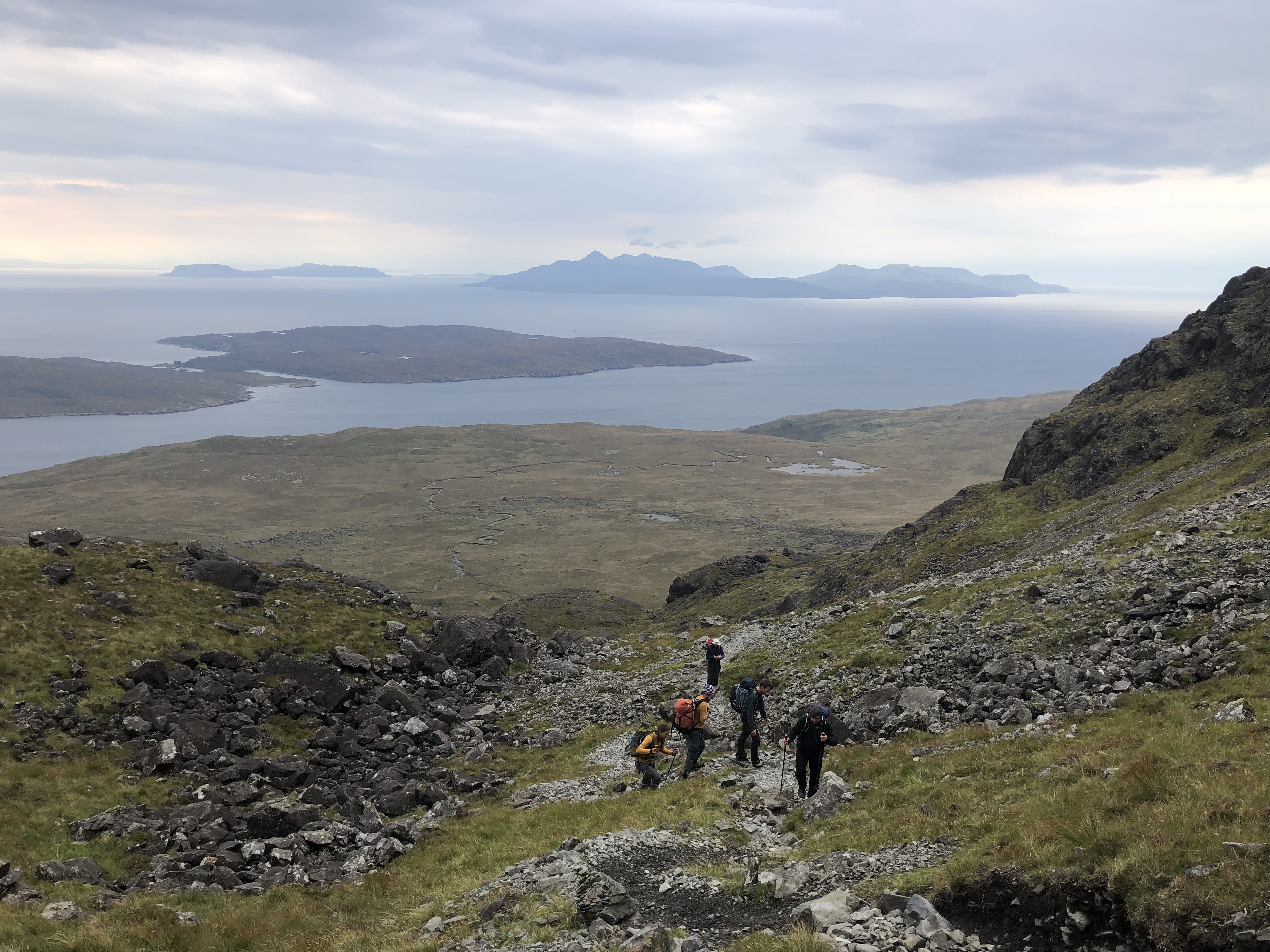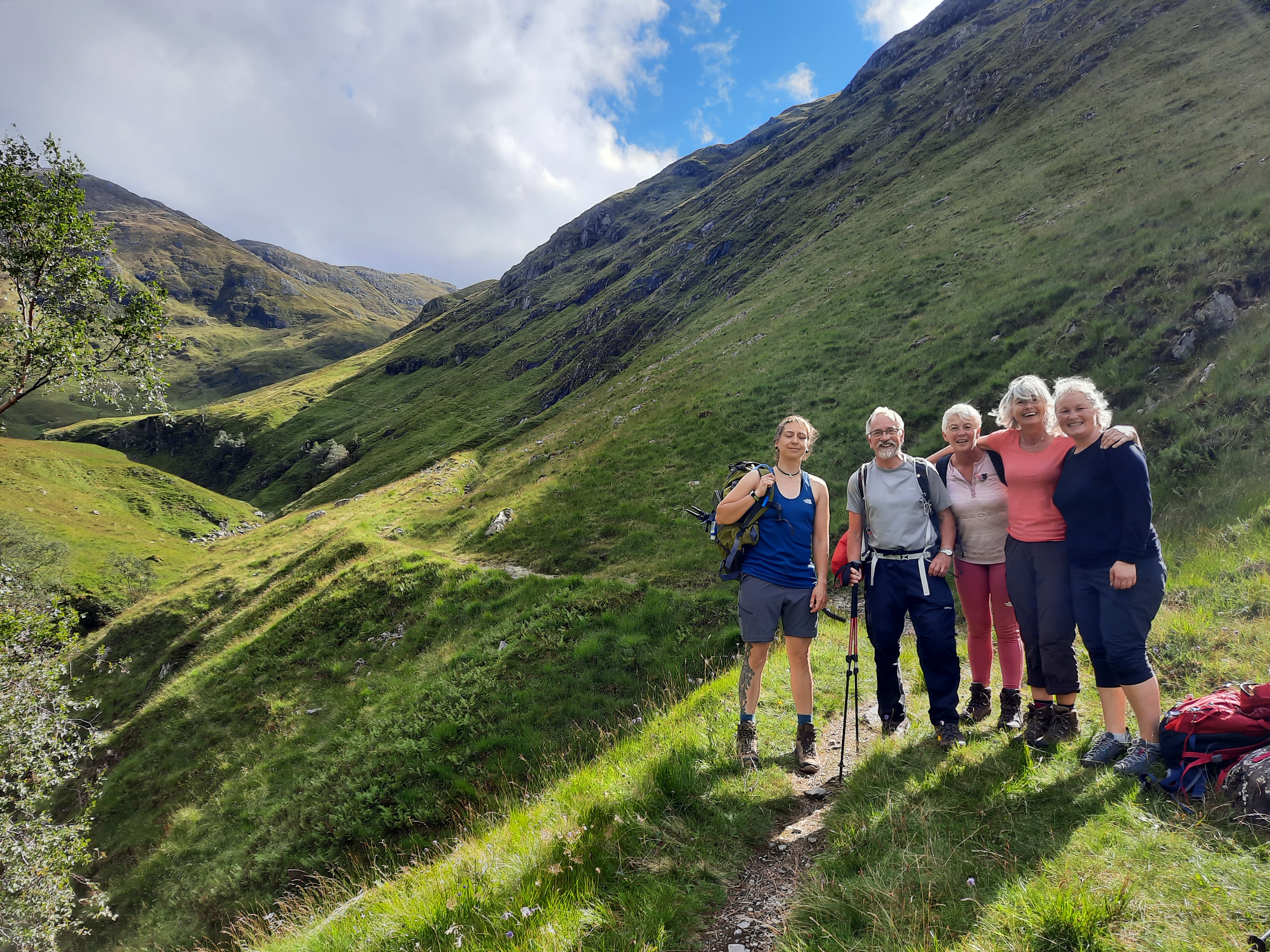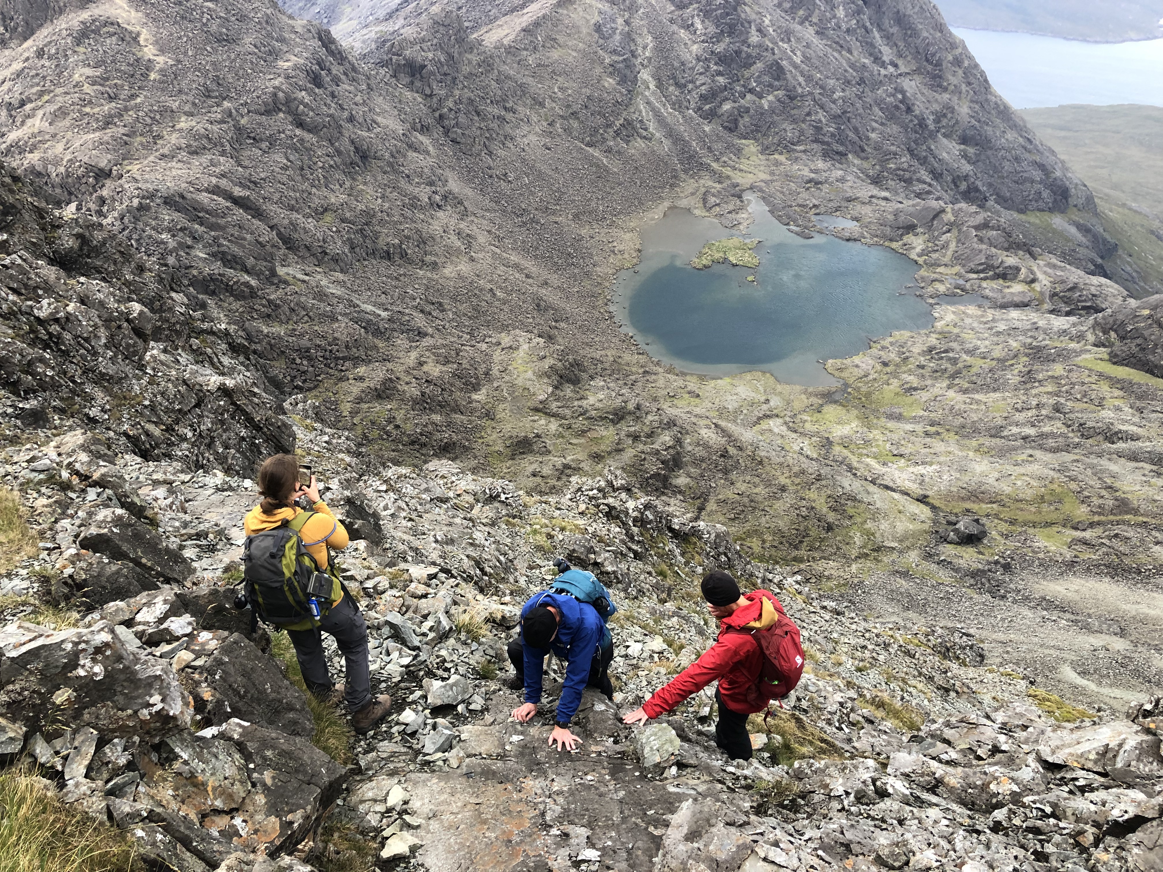 Sunday brought more of the same weather, so many took the opportunity to get home early. However, Evelyne explored the Balmacara Woodland, onto the beach and had a lovely walk. Meanwhile, Anta, Maggie, Katrina, Jule and Drummond too were keen on heading out, and so walked from Morvich, Kintail up to the Bealach Na Sgriane between Beinn Fhada and A Glas Bhein for the afternoon. They were rewarded with glorious sunshine, great views and also a bit of ascent on our “low level” walk!