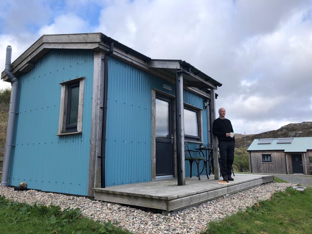 Friday started overcast but by late morning it had turned out into another glorious day. Debbie and Evelyne drove across the new bridge to the island of Great Bernera. They walked the waymarked coastal path from Breaclet to Bosta and returned via the road. Their highlight was getting a guided tour of an iron age house at Bosta. Bob and Fiona took the opportunity of using one of the bunkhouse’s double kayaks and paddled around the island of Flodaigh before lunch. In the afternoon they climbed the local and rugged ‘Marilyn’ Suaineabhal. Afternoon arrivals Alan, Fiona, Maggie and Katrina also climbed Suaineabhal and met Bob and Fiona just below the summit. Robert is scheduled for a factory reset on his right knee next month, so decided to take in the splendid views at the bunkhouse. Last to arrive was Jake on his bike having set off from Forres on Thursday. He found a good spot at Torrachilty Forest, Contin on Thursday night to lay down his sleeping bag. He was up at the crack of dawn and arrived in good time for the mid morning ferry.