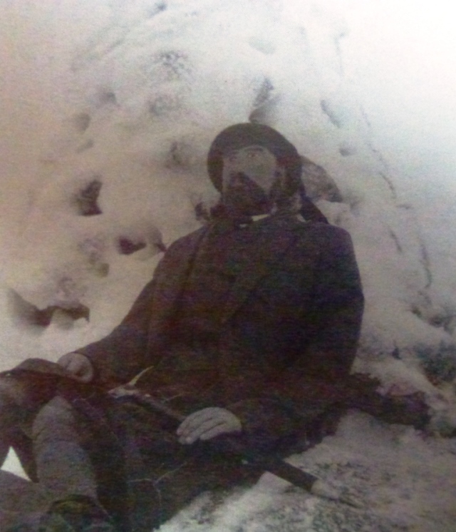 The rest of the group of 21 headed up the track, peloton style, towards Carn Ban Mor. Regular stops kept the group together as they snaked their way steadily towards Tom Dubh and then the first Munro of Monadh Mor. This stretch of barren remote and lonely upland (the Moina Mhor) is one of the most psychologically intimidating walks in the whole of the UK, if you walk it alone! Today there were many people on this route, some coming up from White Bridge and biking in part of the way. It was proving to be surprisingly chilly when lingering at the summits, so lunch was taken in the shelter of Coire Cath nam Fionn, the Corrie of the Battle of the Fingalians! Who fought and who won is lost in the mists of time, but after lunch the party made their way up the stony hill side to the 2nd Munro of Beinn Bhrotain. After that it was unchartered territory for virtually everyone as the now fragmented party made their way down via the demoted Munro of Carn Cloich-mhuilinn (demoted in 1981 by James Donaldson and Hamish Brown). It is said that Sir Hugh Munro would have been horrified that this Munro was deleted as he was leaving it for his last one. He never did complete his own list of Munros (died in 1919), so Robin Campbell of the Munro Society decided to make a full sized effigy of Sir Hugh and carry him up for a posthumous ascent of the 3 tops he failed to do (Carn an Fhidhleir, Carn Cloich-mhuillin and the In Pinn). His first hill was Ben Lawers in 1879 and his last (posthumous) hill, the In Pinn was completed in 1992. His round therefore of 113 years will take some beating as the slowest ever!