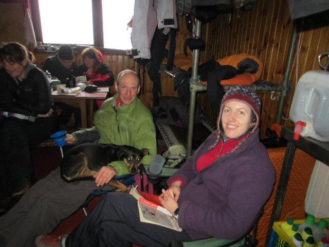 Nevertheless, 13 MMC members, one welcome guest Kenny and Penny TWD boarded the boat during a lull in the weather. The bags were successfully unloaded with only one mitten falling into the water (thanks Dan for rescuing my mitten) and the JMCS hut was opened for Friday night merriment.
