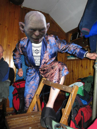 And speaking of bathroom matters, two of our number were brave, or daft, enough to have a bathe in the cold clear waters of Loch Scavaig. Jake (AKA Gollum in his Goonie) and Dan dived into the frigid water and survived a good splashing about unscathed by the cold, the barnacle-covered Gabbro or the sharp-toothed seals who looked on with slightly disdainful disapproval.
