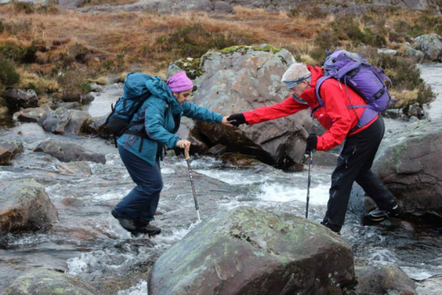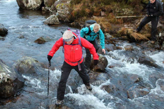 Crossing the river en-route to Fuar Tholl