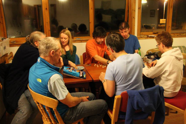 Another sociable evening followed with plenty food and drink such party games as the cereal box game and the chair-and-cork game. These games give a good opportunity to test flexibility and agility in a competitive setting, and more importantly, to laugh at drunk people falling over.