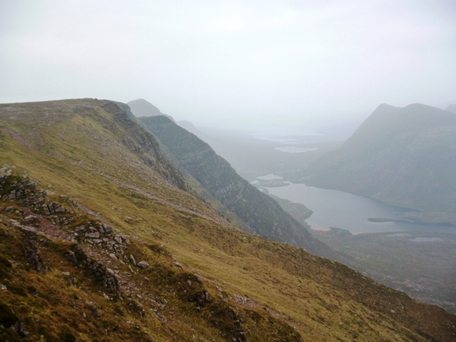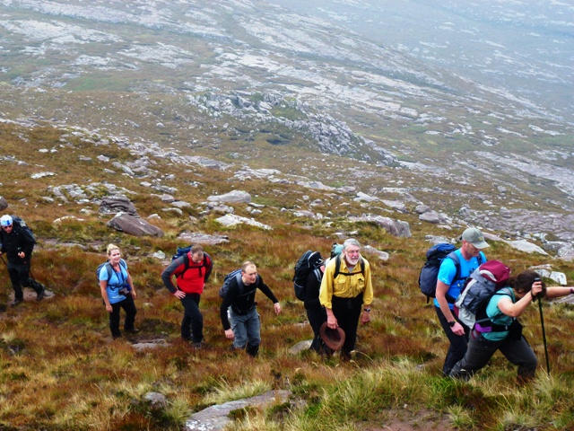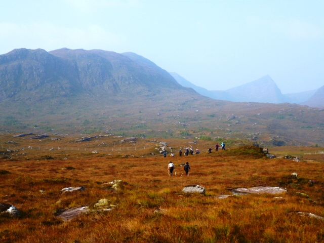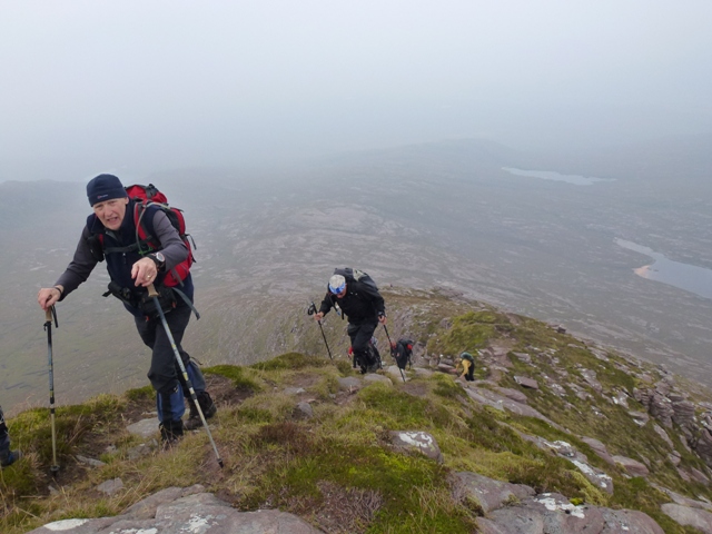 Heavy, Bernie, Maggie D, George H, and Ray took a slightly different approach from the Stac Pollaidh road and made their way in to the impressive setting of Lochan Tuath, under the cliffs of Sgurr an Fhidhleir. There were unconfirmed reports of naked swimming in the loch (still waiting for the photos!), before they went up a gully to the summit and then off the hill via the minor summits to the north. Ken Ross had a nice walk round the Achnahaird coast of sandy bays and rocky inlets and he did see an eagle. Fran Knowles took her fishing line to try her luck at Loch Vatachan but the fish were not biting on the flat calm, midgy, silence of the loch.