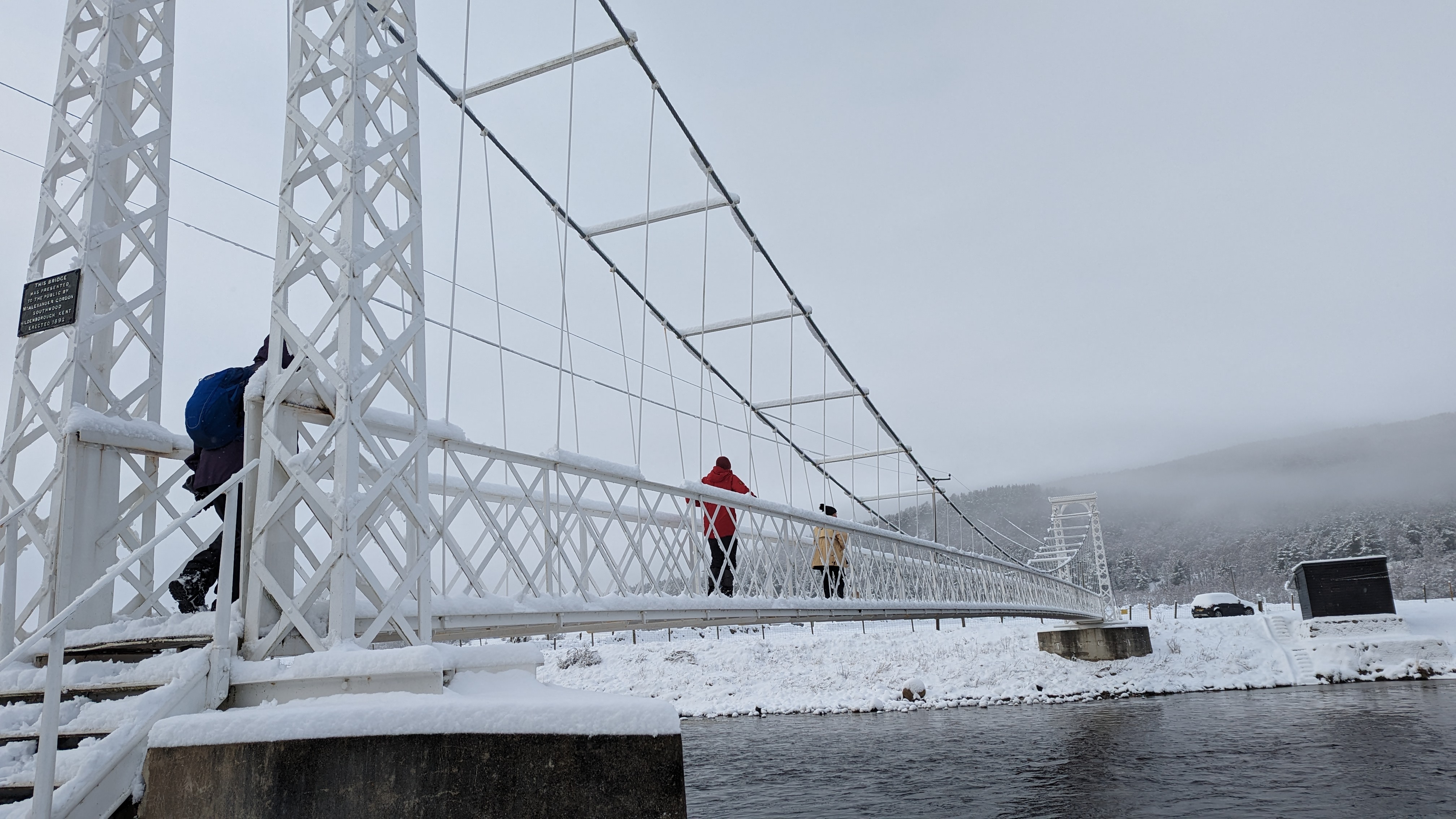 Evelyne, Shona, Graeme, Anta, David, Becka, Alan, Fiona D, Bob and Fiona C all went on the 7 Bridges walk, with Evelyne repeating this for the second time this weekend. It was a winter wonderland of monochrome, tracks from birds and hares in the snow, and even a dipper was spotted taking a dip in the Dee. Brent, Dianne, Dottie, Jule and Justin all had fun coming up with new Farrow and Ball paint colours on their walk around Ballater. Under the seagull grey sky, they managed to remember all 20 items of last nights Generation Game. Songs were sung, but no mention in the BRB as to whether Rick Astley made another appearance.